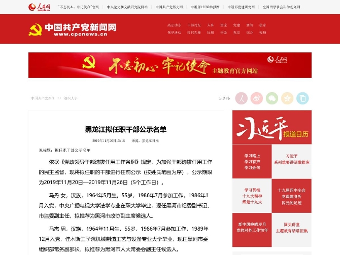 昆明信息港讯 机器人小明 11月19日,中共黑龙江省委组织部发布29名拟任职干部公示名单,公示期限为2019年11月20日—2019年11月26日(5个工作日)。详情如下: