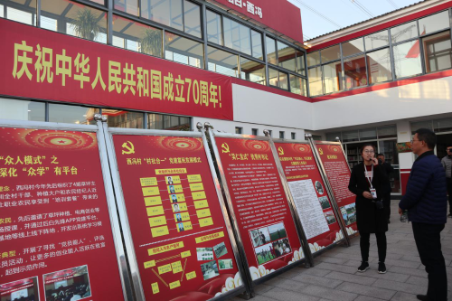 西冯村党支部书记李治顺向记者介绍西冯村的相关情况