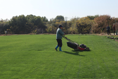 面积5000多亩的草坪一望无垠,以天富道328和混播黑麦草为主,全部采用底铺黄沙和喷灌设施集中连片种植,不破坏土壤层,不造成水土流失,全面贯彻绿色环保发展理念。为了加快发展农业机械化,村里还成立草坪科技协会和绿野草坪合作联社,改善生产条件,增强综合生产能力。