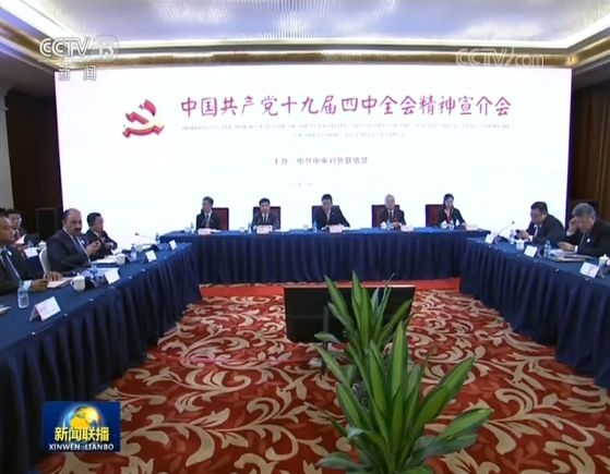 20日,中共中央对外联络部还在南昌举办了“中国共产党十九届四中全会精神”宣介会。介绍了党的十九届四中全会召开的时代背景、总体目标和重点任务等内容。