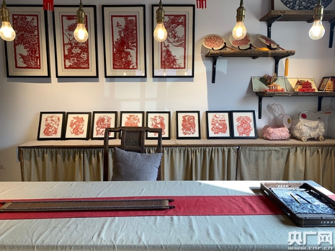 梅林匠心铺内陈设的村民作品(央广网记者 孙冰洁 摄)