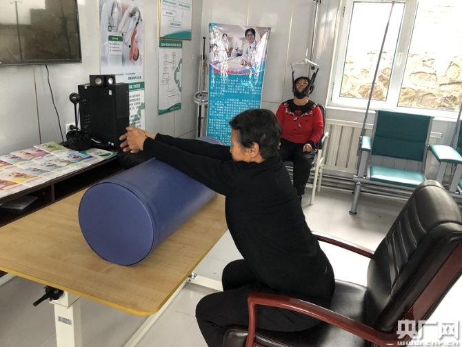 村民正在卫生室内进行康复训练(央广网记者 王晶 摄)