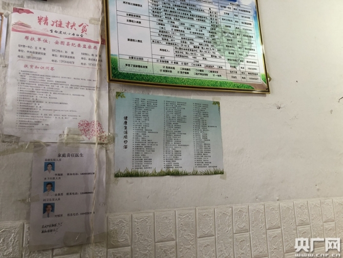 贾如美家中墙上便贴着医生联系方式(央广网记者 王晶 摄)