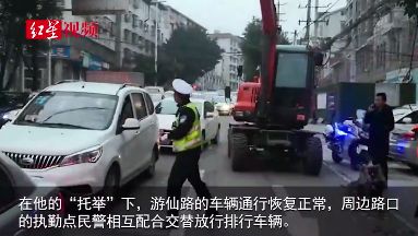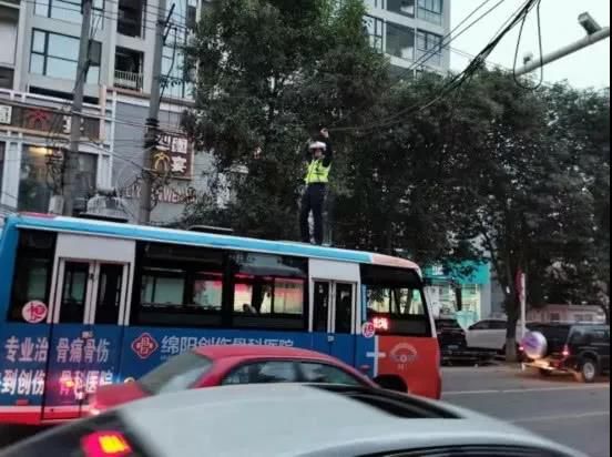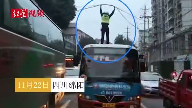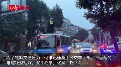 看视频,公交车顶举光缆,绵阳铁骑交警变身托举哥