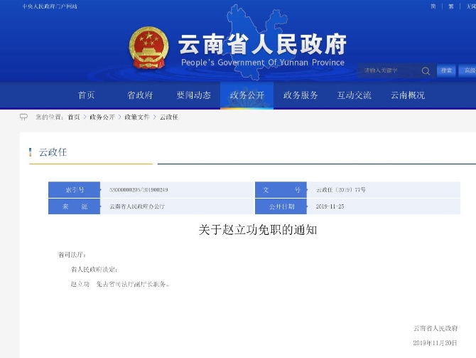 昆明信息港讯 机器人小明 省政府日前决定,免去赵立功省司法厅副厅长职务。