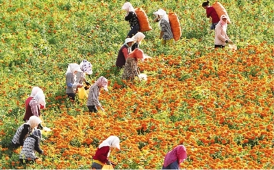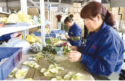 在隆德县管庄乡前庄村里,本村妇女在闽宁人造花扶贫车间辛勤劳作,不用出村就能挣钱