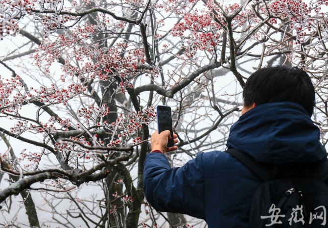 11月25日,受较强冷空气影响,黄山风景区平均气温下降6-8℃,最低温度达到零下,五百里黄山,大面积雾凇奇观铺展在游人眼前,成了晶莹剔透的琉璃世界,游客纷纷拍照留念。