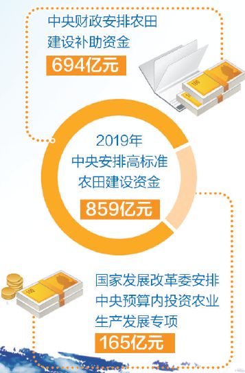 据介绍,财政部已整合完善中央财政投入机制,会同农业农村部整合设立农田建设补助资金,支持高标准农田及农田水利建设。2019年,中央安排高标准农田建设资金859亿元。其中,中央财政安排农田建设补助资金694亿元,国家发展改革委安排中央预算内投资农业生产发展专项165亿元。今年10月,中央财政已提前下达2020年农田建设补助资金预算616亿元。