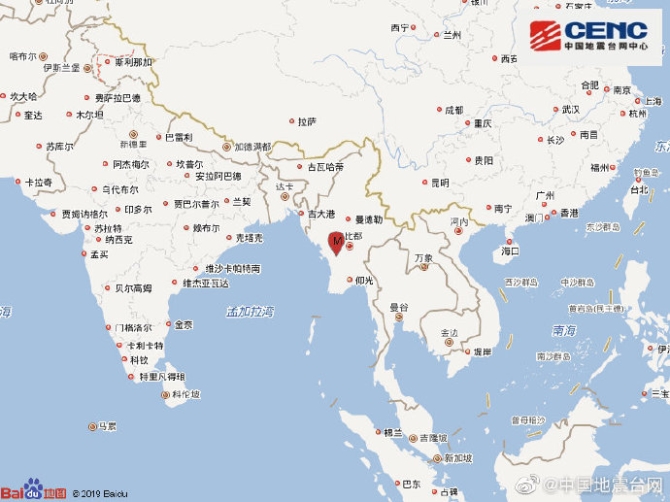 缅甸发生5.3级地震 震源深度90千米