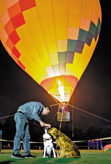11月22日,市民带着自己的爱犬在昆明市海埂公园玩耍。当日,昆明滇池湖畔举行“点亮滇池·海埂夜明珠启幕活动”,文创产品展示、民间艺人演艺、星空影院、烧烤派对吸引众多市民前来休闲。 新华社记者 江文耀/摄