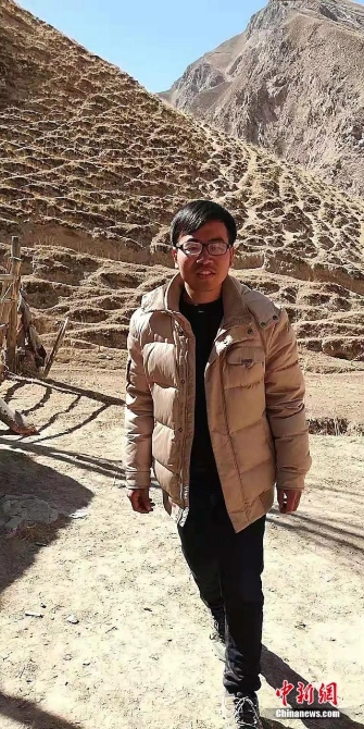 戴豪杰站在西合休乡的昆仑山上。受访者供图