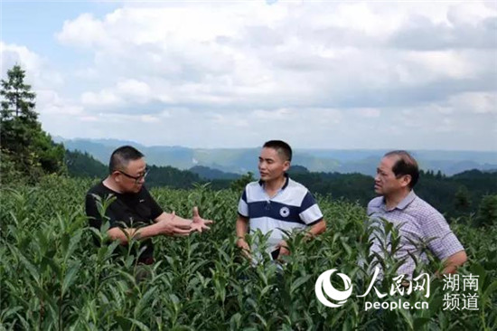 湘西电大校长向阳(左一)为农民大学生讲授黄金茶栽培技术。湖南广播电视大学供图