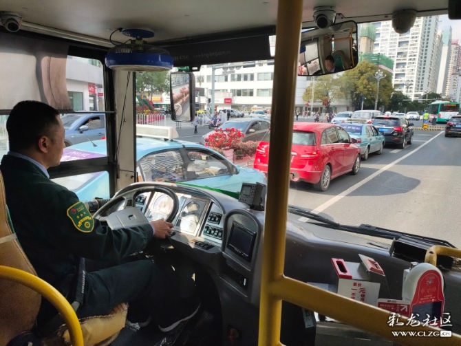 只见这位师傅全神贯注开着车,这是昆明公交集团的硬性规定,禁止驾驶员驾车过程中聊天或使用手机。