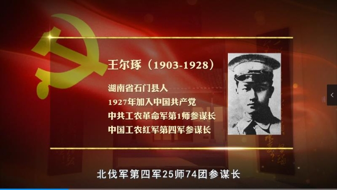 1928年8月25日,王尔琢在江西省崇义县思顺圩追劝叛徒时,不幸英勇牺牲,年仅25岁。