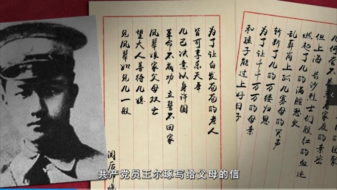 中共湖南省委党史研究院院长胡振荣:其实相差只有几天,就在这个时候,王尔琢感觉到非常愧疚妻儿,就提笔给父母写了一封信,也就是大家所熟悉的“托孤书”。
