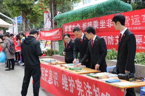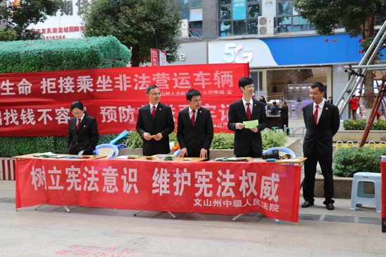 12月1日,在第六个国家宪法日到来之际,文山州2019年“宪法宣传周”系列宣传活动在东风路光大步行街拉开帷幕。当日,来自我州人大办、政协办、州纪委办、州中级人民法院、州人民检察院、州司法局等60多家州级单位参加了集中宣传活动。