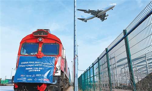 10月25日,中欧班列(义乌—列日)“世界电子贸易平台(eWTP)菜鸟号”首趟列车抵达比利时列日物流多式联运货运场站。这是首个贯通中国长三角区域、中亚和欧洲并服务于跨境电子商务的专列。 新华社 记者潘革平摄