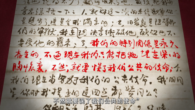 “就是我们的感情也要社会化,不要把对于私人感情的热烈,超过对于团体感情的热烈。”“我们的特别关系是永久存在的,不过现在我们只能把牠埋在深深的胸怀里。不然就要误了我们公共的使命”。