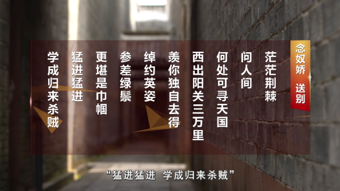 1925年秋,王经燕受党组织派遣,准备前往万里之遥的莫斯科中山大学学习。以革命事业为重的张朝燮鼓励内心犹豫的妻子服从组织安排,不要留恋家庭和孩子。行前,张朝燮填词一首,装入信封,让妻子在旅途中拆读。这首《念奴娇·送别》的词中,没有长亭送别的依依不舍,也没有西出阳关的悲哀与凄凉,猛进猛进,学成归来杀贼。催人奋进,激烈豪迈。