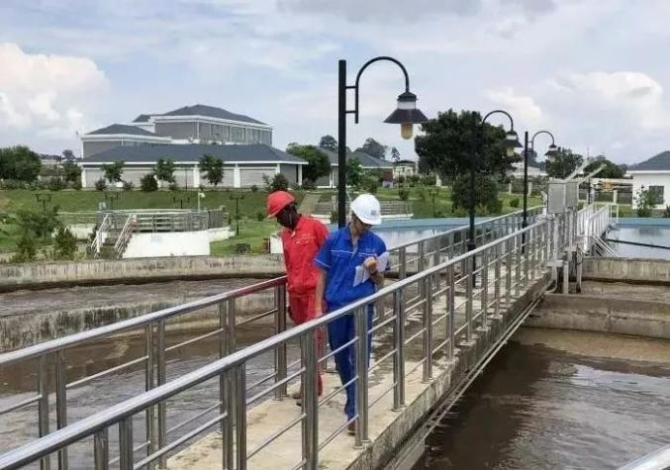 污水处理厂的中国员工向当地工人传授维修技巧|新华社