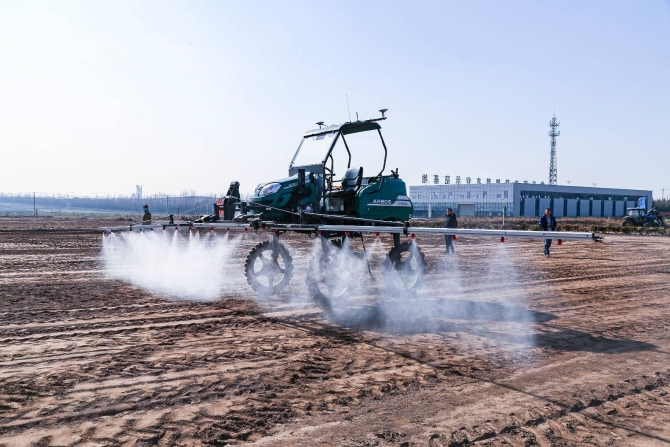 在演示现场,蔚蓝天空下,空旷的土地上,记者看到雷沃阿波斯无人驾驶拖拉机正在田间自主、有序作业。映入眼帘的是雷沃阿波斯无人驾驶自走式喷杆喷雾演习,紧接着具有主从导航功能的雷沃欧豹无人驾驶拖拉机牵引旋耕机对地块进行耕整作业,随后雷沃谷神无人驾驶小麦机主从导航系统收获卸粮作业演示。从植保到耕整再到收获,全程无人作业,格外吸引眼球。