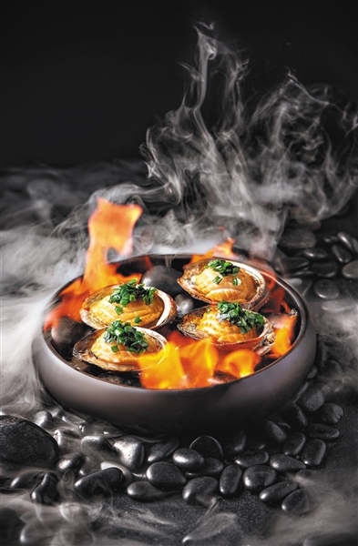 夏 石烹是新派粤菜流行的烹饪方式之一,给人火辣辣的夏日之感。