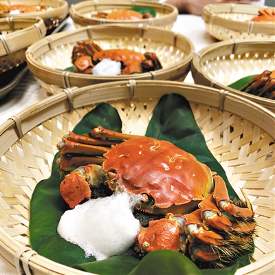 秋 广州新锐厨师阿MAY一道菜勾勒出江南捕蟹图——从湖泊中刚抓起的大闸蟹,被叶子裹扎起来,送到餐桌上。
