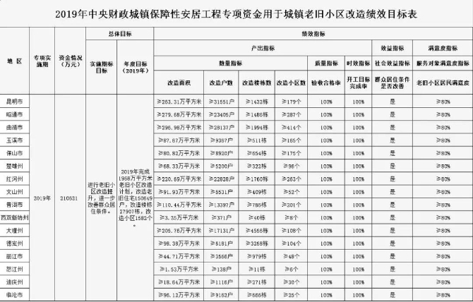 近日,云南省财政厅发布了《关于2019年度中央财政城镇保障性安居工程专项资金用于城镇老旧小区改造资金分配和中央提前下达的城镇保障性安居工程资金分配情况的公告》。