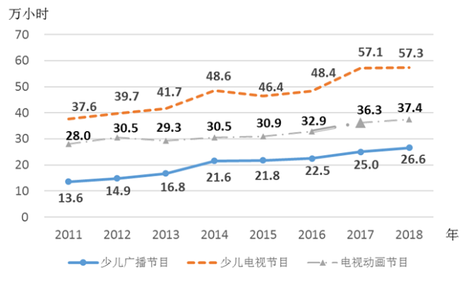 图7 2011—2018年少儿广播节目、少儿电视节目、