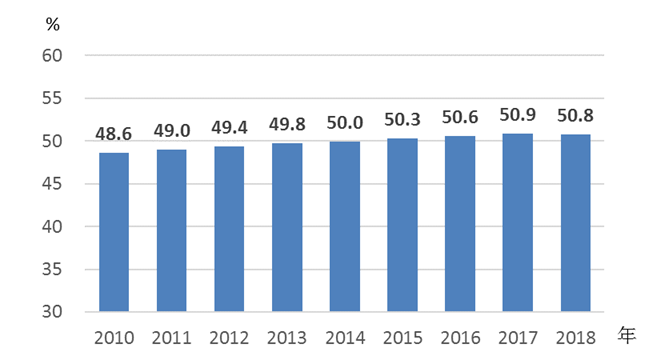 图9 2010—2018年村委会成员中女性比重情况