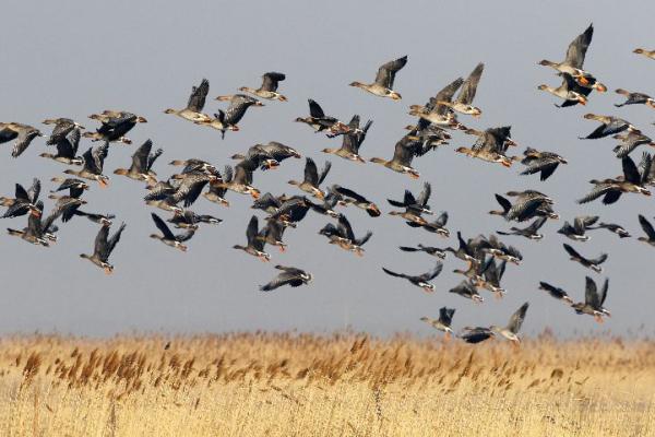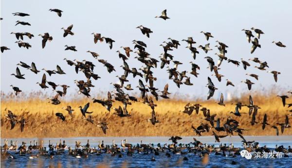 近来,北大港湿地迎来候鸟迁徙高峰,出现万鸟云集群雁归的壮观场面。