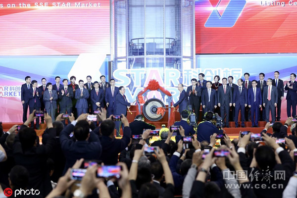 7月22日,上海证券交易所迎来历史性的时刻,科创板正式开市,首批25家科创板企业股票上市交易。(图片来源:东方IC)