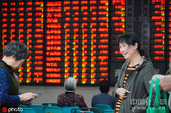 11月1日,江苏省南京市,股民在某证券公司营业部关注股市行情。(图片来源:东方IC)