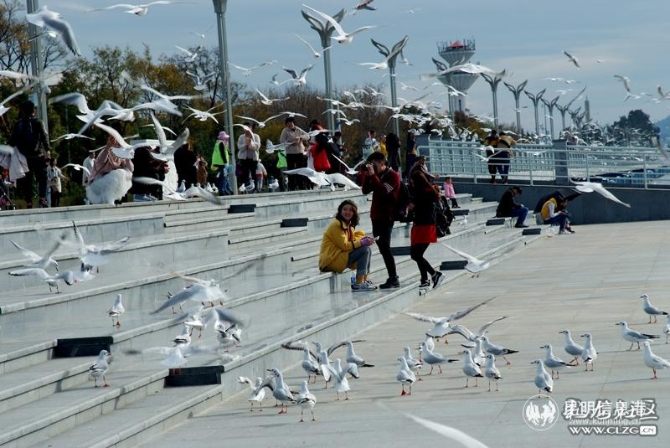 草海大坝亲水平台上人鸥同乐。彩龙网友老苏/摄