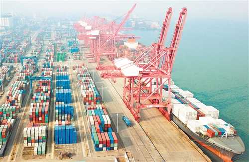 12月8日,江苏连云港港口集装箱码头一派繁忙景象。今年前11个月,我国对“一带一路”沿线国家合计进出口8.35万亿元,增长9.9%,高出全国整体增速7.5个百分点,占外贸总值的29.3%,比重提升2个百分点。耿玉和摄(中经视觉)