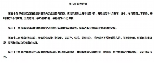 《中央储备肉管理办法》提到,储备肉是指国家用于应对重大自然灾害、公共卫生事件、动物疫情或者其他突发事件引发市场异常波动和市场调控而储备的肉类产品。储备肉包括两部分,一是储备的活畜(含活猪、活牛、活羊),二是储备的冻肉(含冻猪肉、冻牛肉、冻羊肉)。