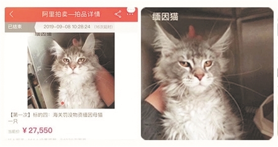 一只被海关罚没的猫,拍卖价格为27550元。