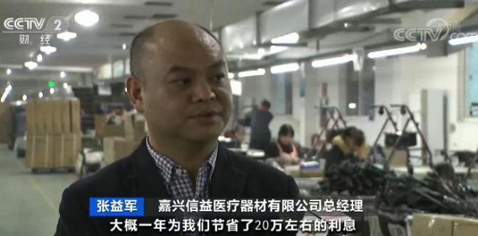 嘉兴信益医疗器材有限公司总经理 张益军:我们当时拿到了1000万(贷款),大概一年为我们节省了20万左右的利息。