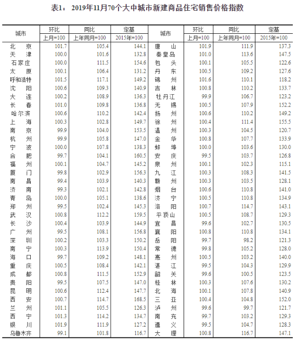 国家统计局12月16日发布消息,国家统计局今日发布了2019年11月份70个大中城市商品住宅销售价格变动情况统计数据。对此,国家统计局城市司首席统计师孔鹏表示,11月份商品住宅销售价格走势总体平稳。
