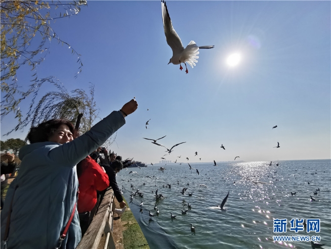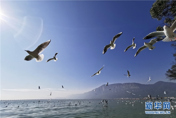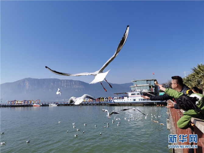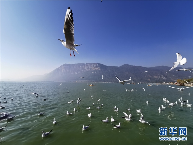 滇池之畔人鸥同欢共乐。新华网 罗春明/摄