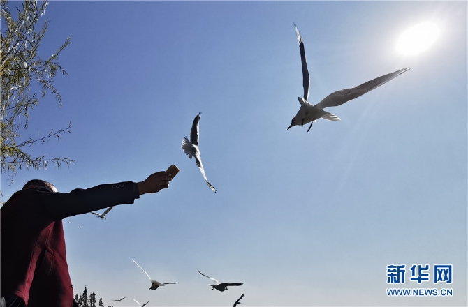 市民在投喂红嘴鸥。新华网 罗春明/摄