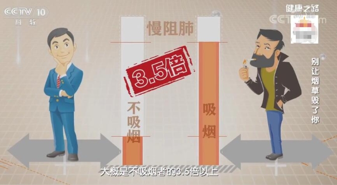 北京医院呼吸科副主任医师周为表示,吸烟者得慢阻肺的风险约为不吸烟者的3.5倍以上,而且,约6成以上的确诊慢阻肺后仍不戒烟的患者,最终走向了死亡。跟着专家测试一下是否存在慢阻肺风险。