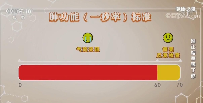 一秒率70%是气流受限的界值。测试结果低于70%,即为气流受限,同时,如果测试者吸烟,就可以基本确认患有慢阻肺。