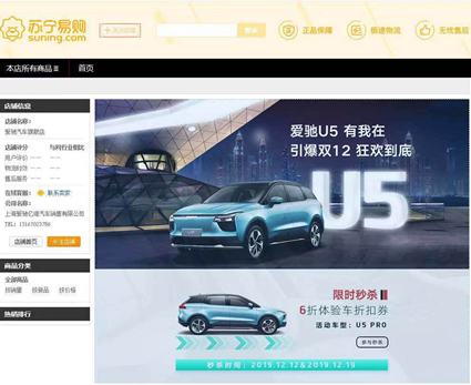 爱驰汽车入驻苏宁汽车电商平台