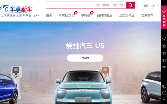 爱驰汽车入驻车享新车馆