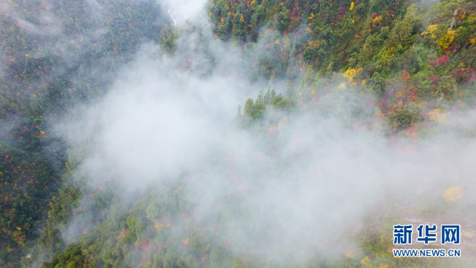 云雾缭绕的独龙江峡谷。新华网 赵普凡/摄