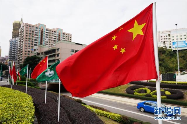 12月17日,在澳门街头,国旗和区旗迎风飘扬。
