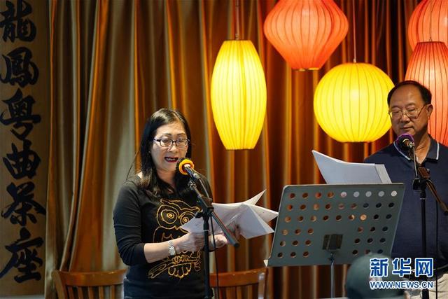 12月17日,在澳门大龙凤茶楼里,曲艺人员表演传统粤曲。 新华社记者 王申 摄
