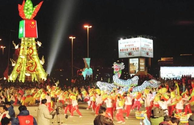 1999年12月20日凌晨,天津市民庆澳门回归活动达到高潮。新华社记者 马平 摄