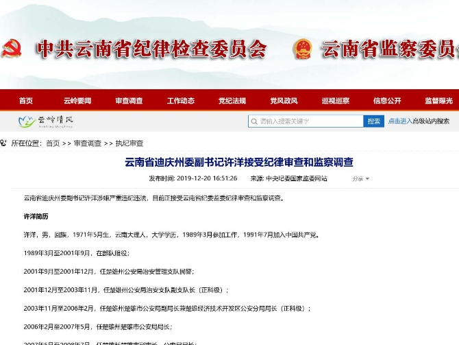 涉嫌严重违纪违法 云南省迪庆州委副书记许洋被查